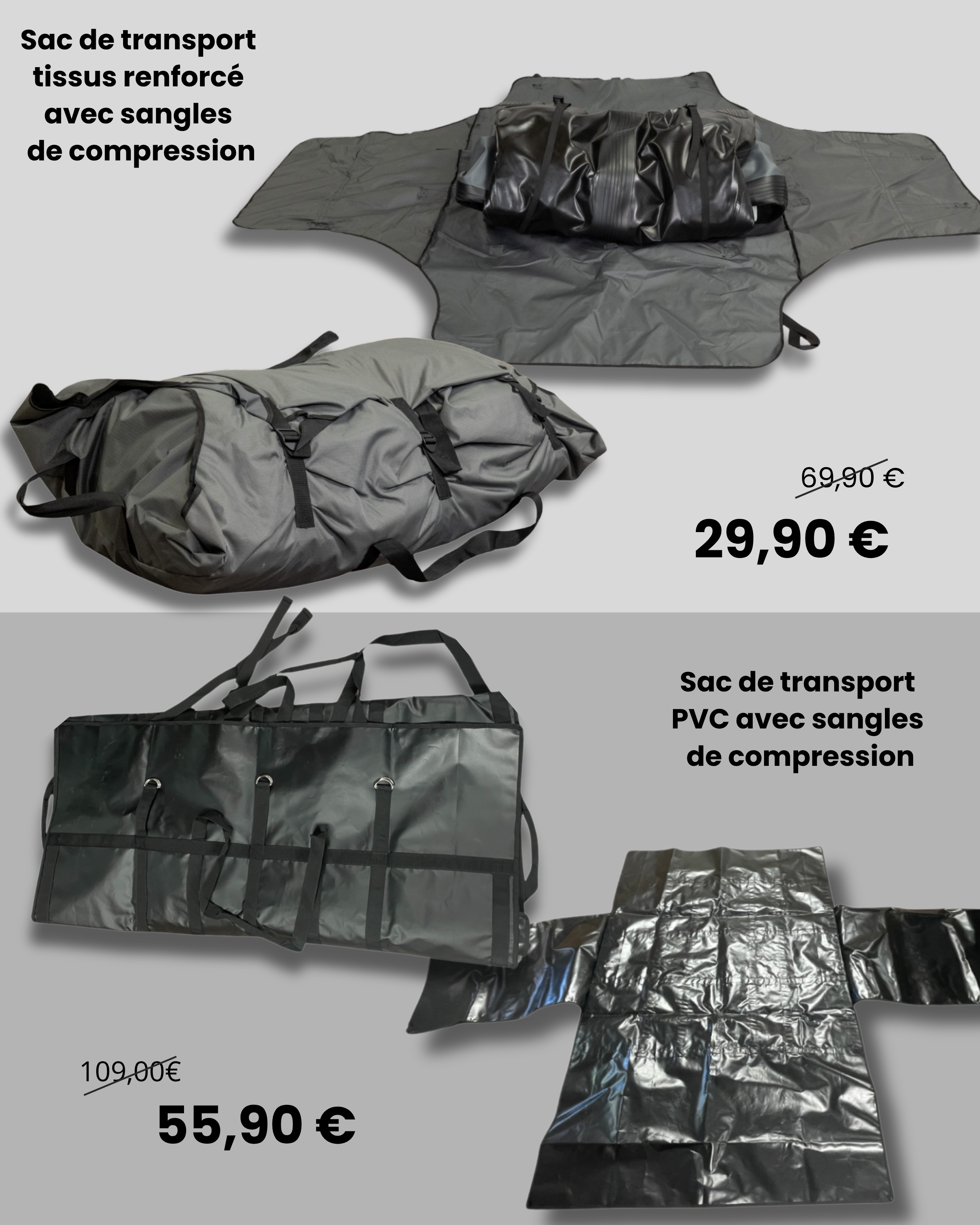 Afin de vous offrir le meilleur rapport qualité-prix, nous vous proposons une offre avantageuse sur nos sacs de transport, disponibles en tissu renforcé ou en PVC, lors de l’achat de votre bateau.